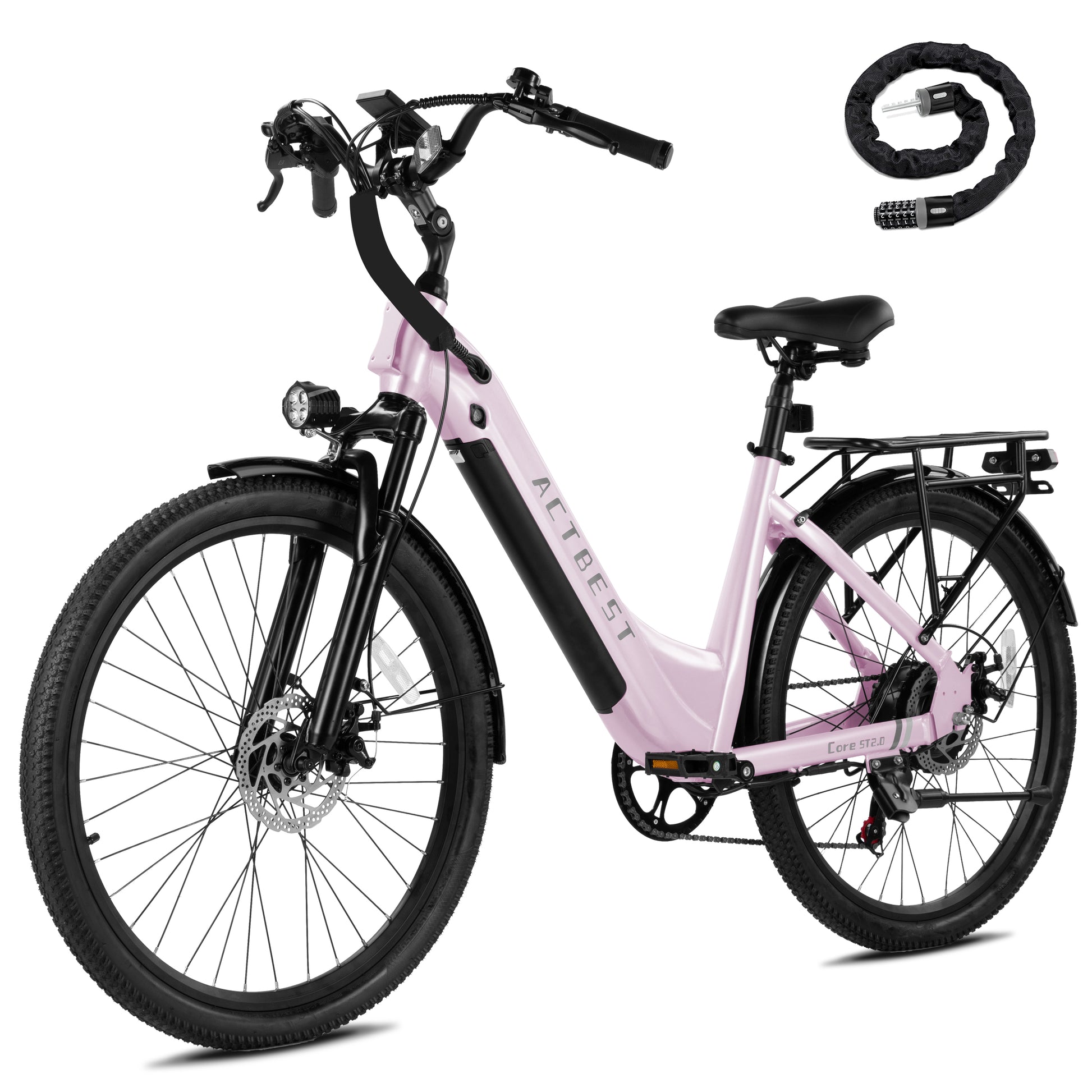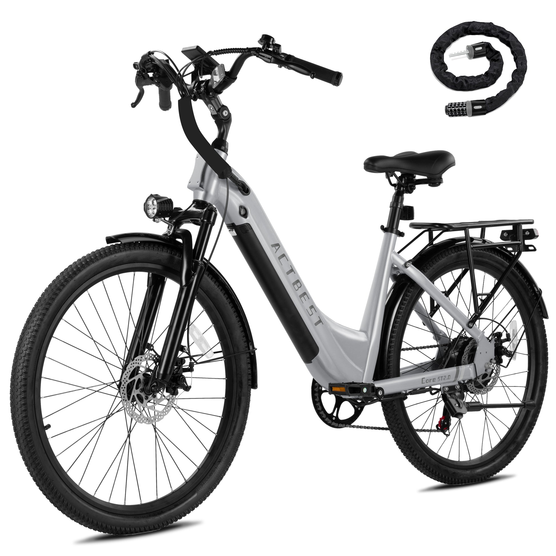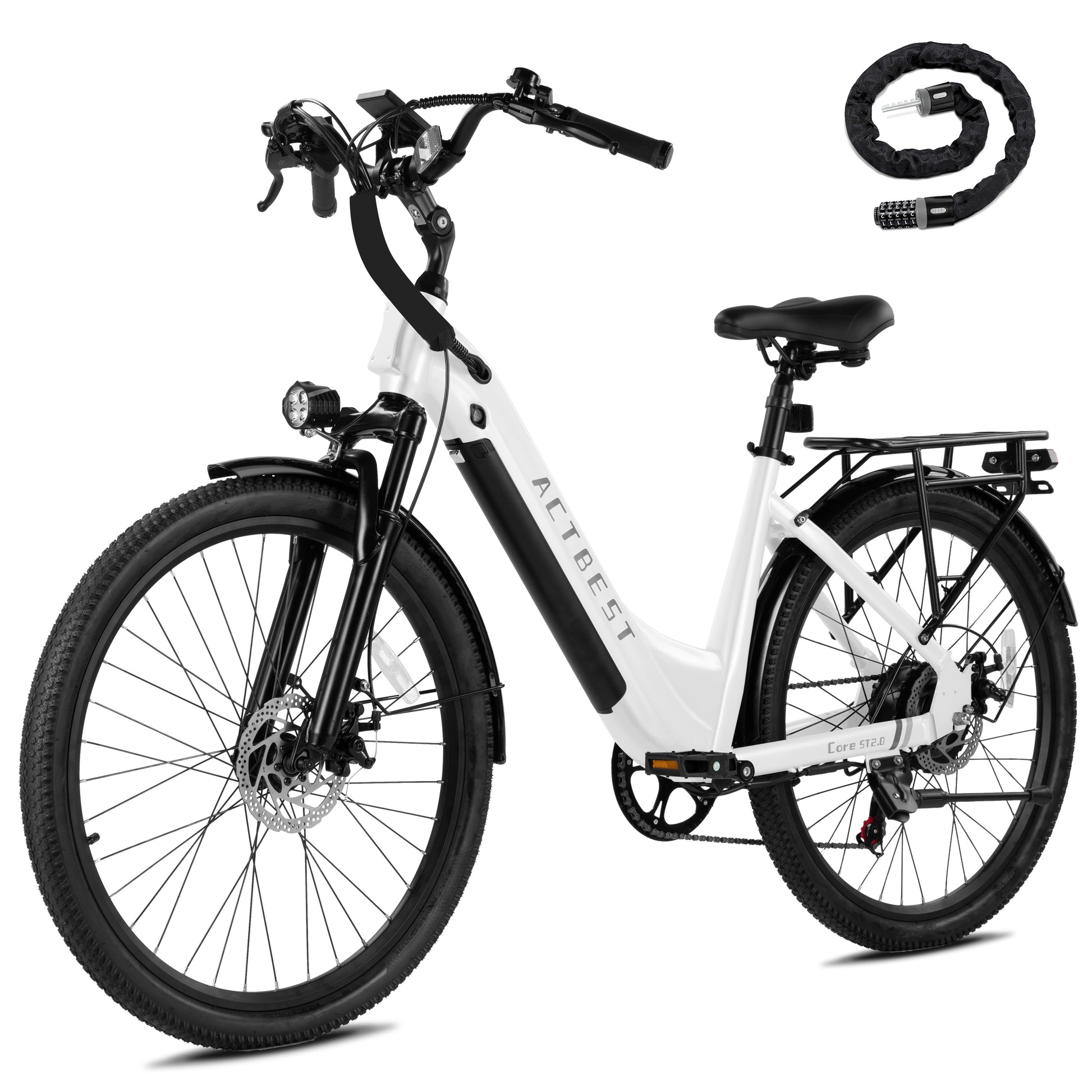 Core ST 2.0 E-Bike: 3 riding modes (Manual, Pedal-Assist, Pure Electric) powered by an over 750W motor (Over 20MPH). Equipped with 7-speed gears, 26"x2.1 tires, and hill-climbing capability for versatile urban or trail use.